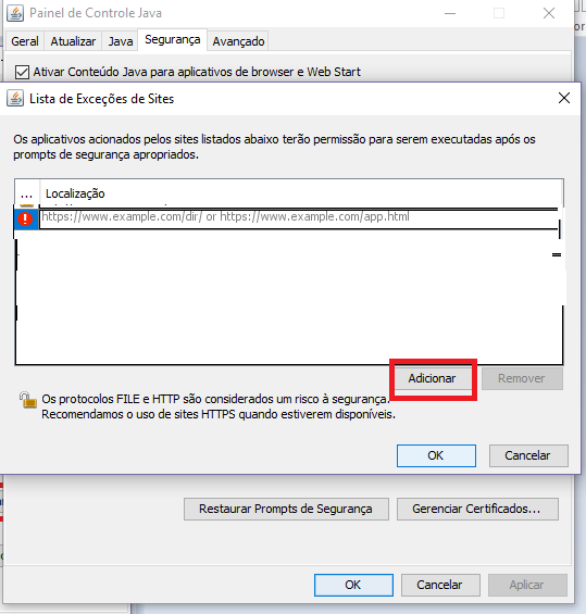 marque a opção ativar conteudo java para aplicativos de browser web e web start caso esteja desmarcado
